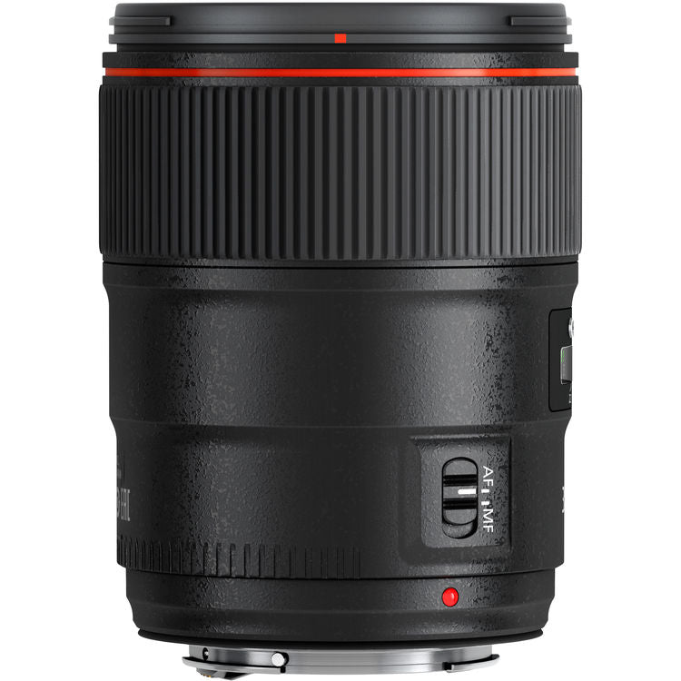 The EF 35mm f/1.4L II USM from Canon is an L-series prime wide-angle lens featuring Blue Spectrum Refractive Optics and a maximum aperture of f/1.4, making it ideal for shooting in low-light situations and for controlling depth of field. Two aspherical elements and one Ultra Low Dispersion (UD) element combine with the BR element to control chromatic aberrations and color fringing for increased clarity and sharpness. A Subwavelength Coating has also been applied to reduce ghosting and lens flare for greater color accuracy and contrast. The Ultrasonic autofocus motor (USM) provides fast and near-silent AF operation. Full time manual focus override enables precise manual focus even when in AF mode.