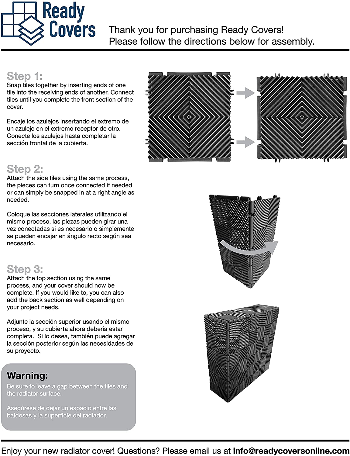 Vented Tile Design Allows Heat to Pass Through Easily While Staying Cool to The Touch. Tiles will Keep their Shape and Not Discolor. This Product Is NOT FOR PORTABLE ELECTRIC HEATERS. ONLY TO BE USED as a Steam Heat Cover **Patent Pending**