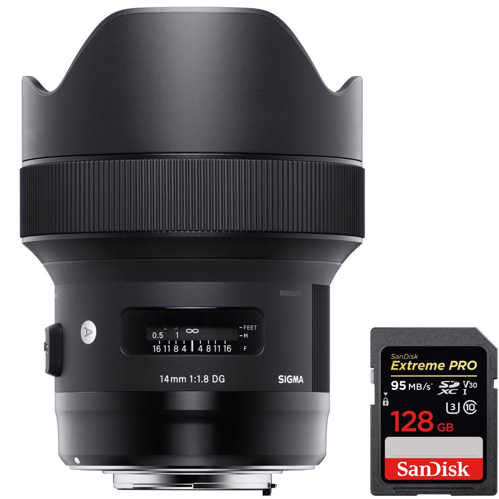 Sigma 14mm F1.8 DG HSM Art Wide Angle Full Frame Lens for Canon (450954) Bundle with Sandisk Extreme PRO SDXC 128GB UHS-1 Memory Card