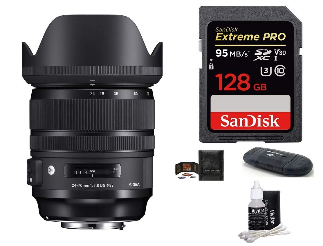 Sigma 24-70mm f/2.8 DG OS HSM Art Lens for Nikon F, SanDisk 128GB Extreme PRO UHS-I SDXC Memory Card and More (5 Items)
