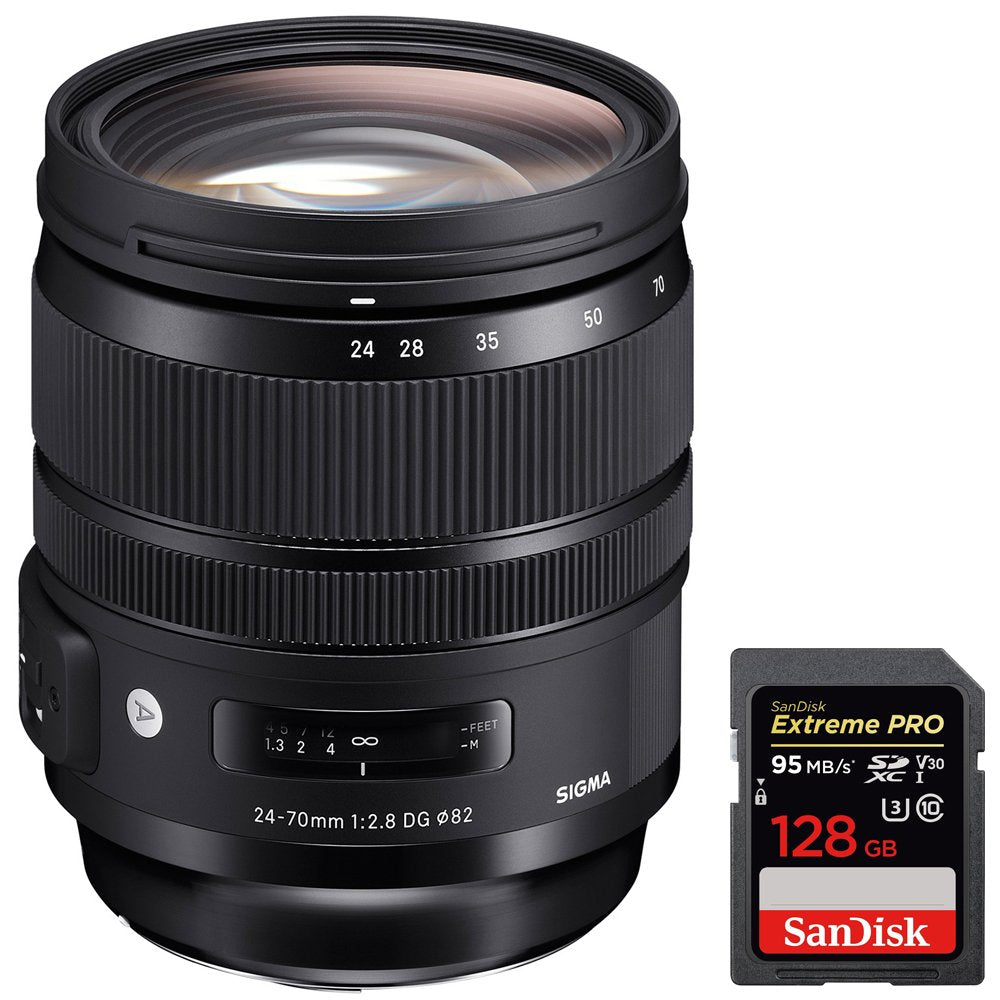 Sigma 24-70mm F2.8 DG OS HSM Art Lens for Nikon Mount (576-955) + Sandisk Extreme PRO SDXC 128GB UHS-1 Memory Card