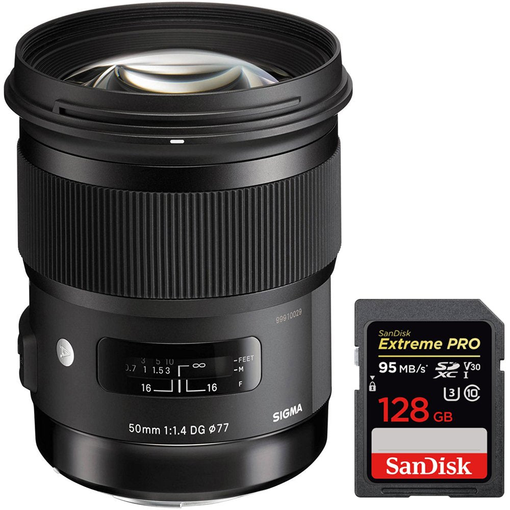 Sigma 50mm f/1.4 DG HSM Art Lens for Sony E Mount Cameras (311-965) with Sandisk Extreme PRO SDXC 128GB UHS-1 Memory Card