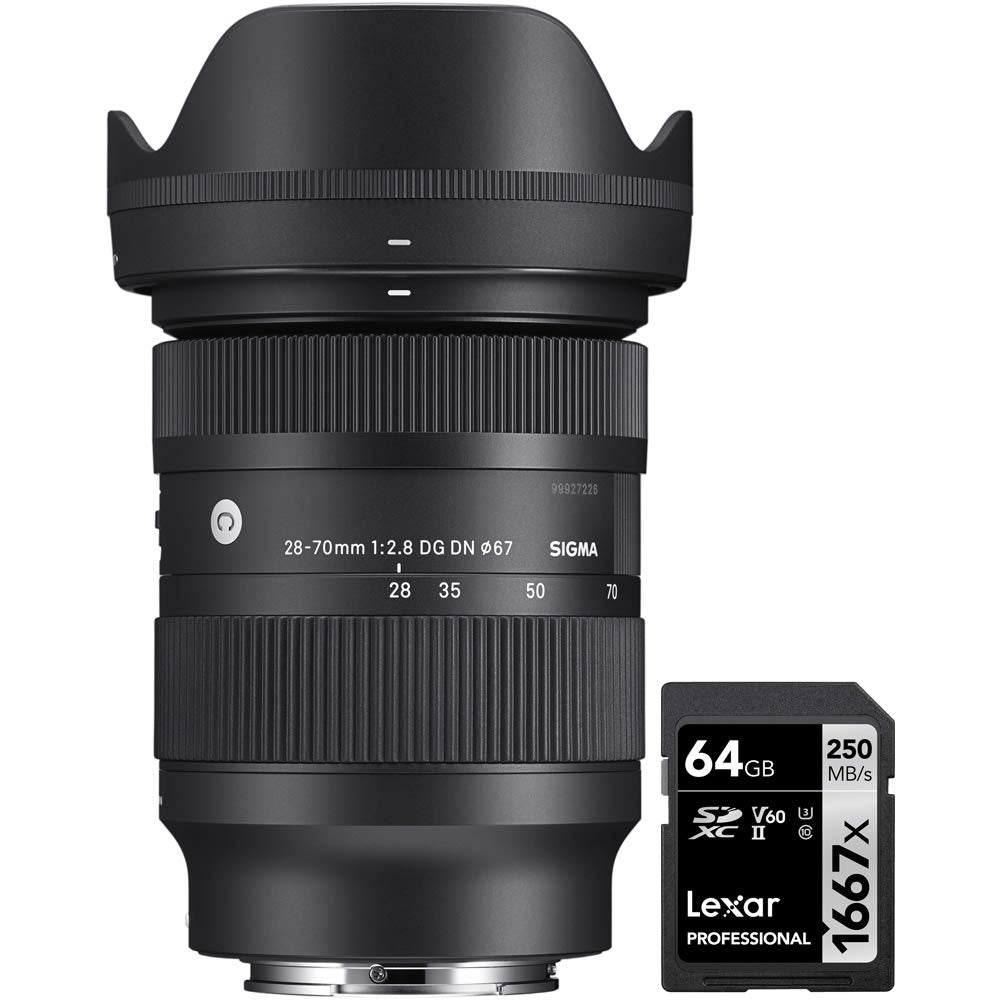 Sigma 592965 28-70mm F2.8 DG DN Contemporary Zoom Lens for Full Frame Sony E-Mount Bundle with Lexar Professional SDHC/SDXC 1667x UHS-II 64GB Memory Card