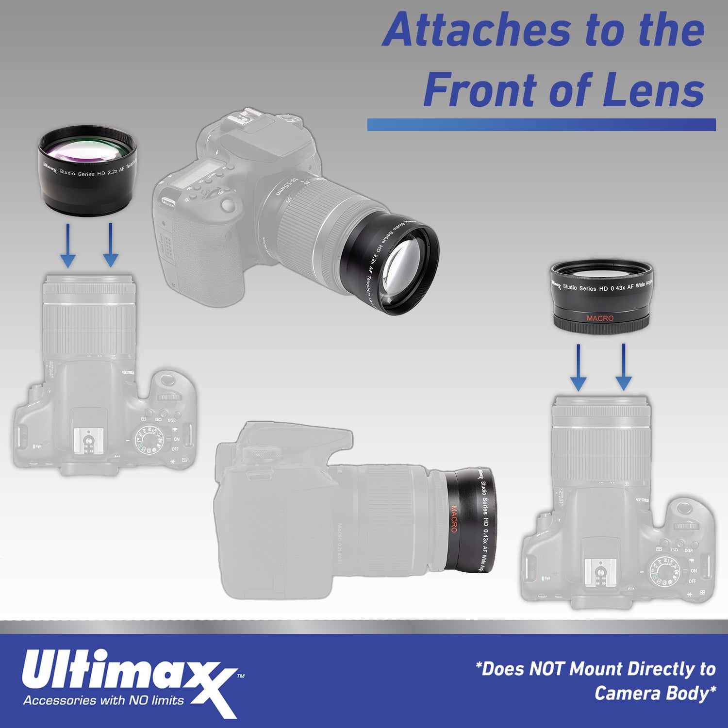 - Ultimaxx 0.43x Wide-Angle Lens Attachment - 72mm - with 62mm to 72mm, 67mm to 72mm, 77mm to 72mm, 82mm to 72mm adapter rings