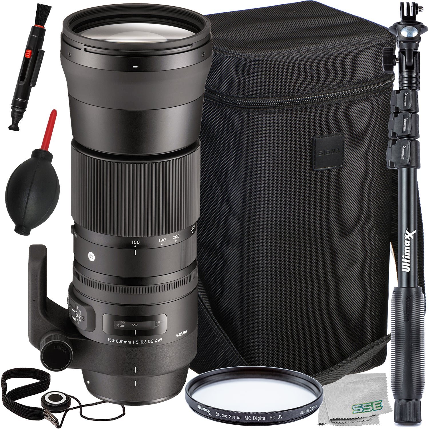 Ultimaxx Starter Sigma 150-600mm f/5-6.3 Lens Bundle (F-Mount) - Includes: Protective UV Filter, Lightweight 48” Monopod, Universal Lens Cap Keeper & More (12pc Bundle)